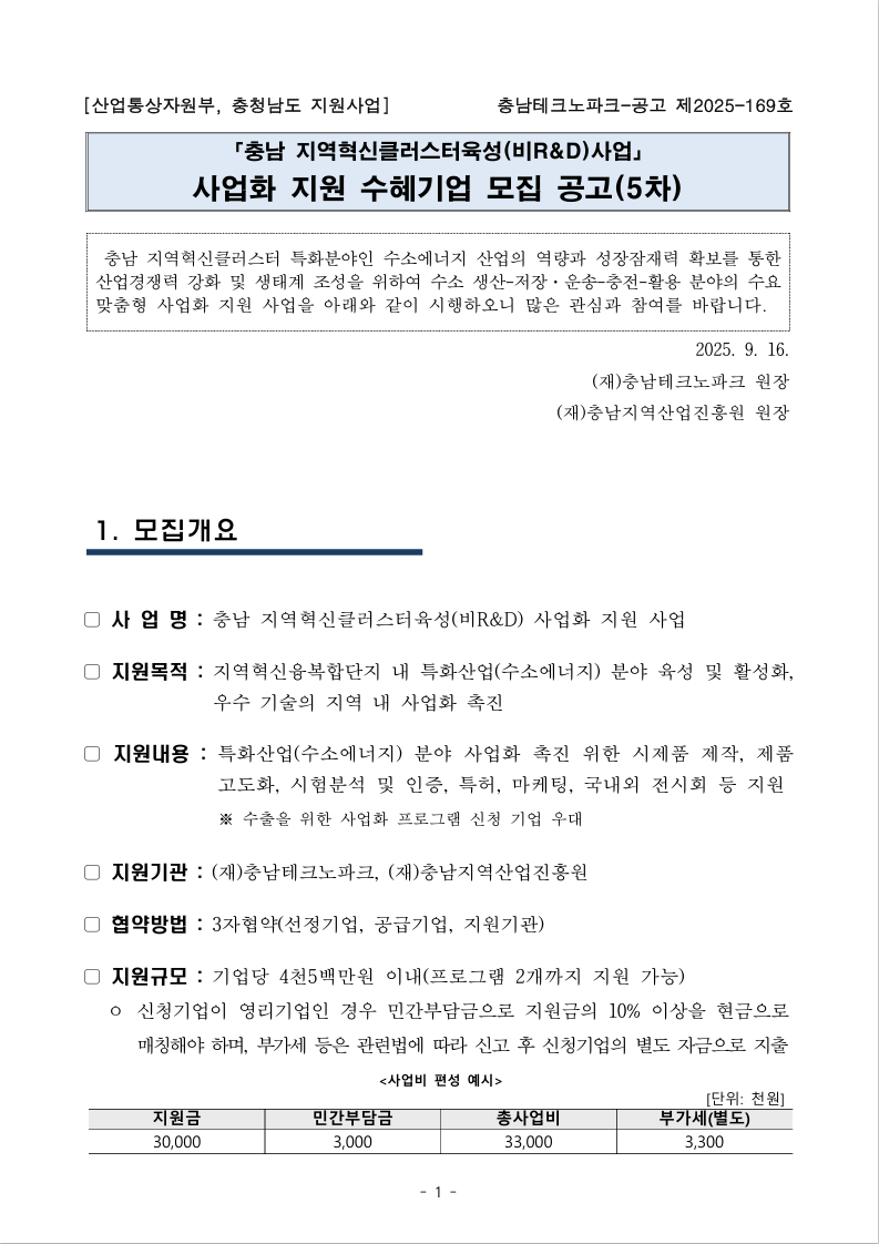 [충남지역산업진흥원] 충남 지역혁신클러스터육성(비R&D)사업 기업지원 프로그램